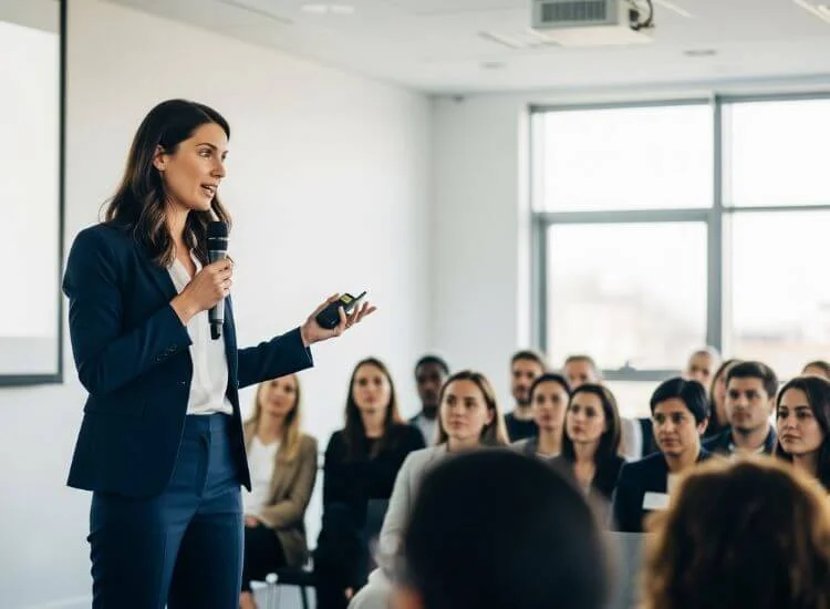 Speak in public confidently by preparing clear key points, practicing your pacing, and using calm, steady breathing. A simple warm-up routine helps your voice feel more controlled. Becoming familiar with the space also reduces tension and supports smoother delivery.